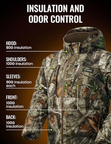 TIDEWE Hunting Jackets for Men, Silent Hunting Coat with 220G Insulation, Deer Hunting Clothes, Next Camo G2