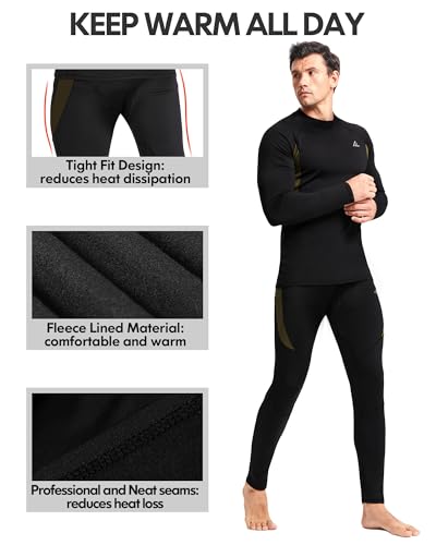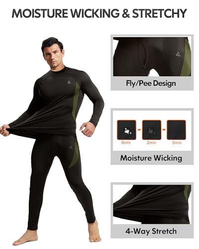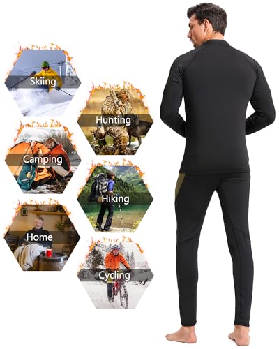 CL convallaria 2 Pack Mens Thermal Underwear Fleece Lined Long Johns Winter Base Layer Cold Weather Hunting Gear