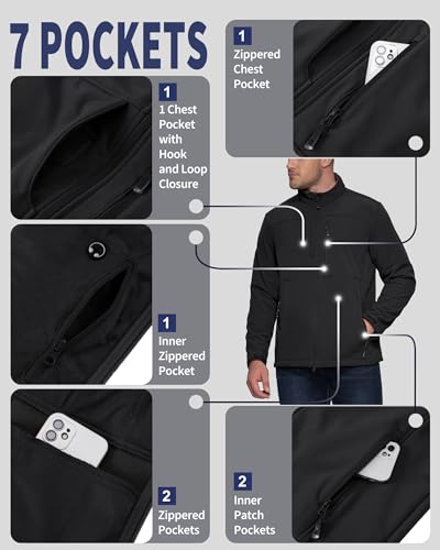 33,000ft Men’s Lightweight Softshell Jacket Warm Fleece Lined Windbreaker Waterproof Soft Shell for Outdoor Hiking