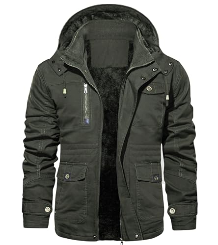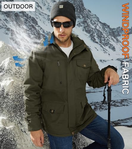 EKLENTSON Men’s Winter Coat Fleece Lined Military Jacekt Thick Cotton Parka Jacket Warm Cargo Jacket Work Coat with Hood