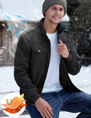 Men’s Winter Jacket-Fleece Cotton Military Coat Thicken Casual Cargo Jacket