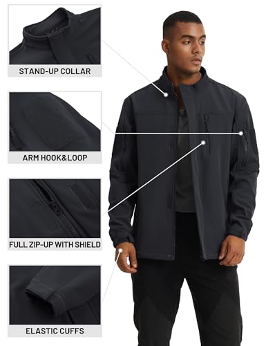 TACVASEN Men’s Tactical Softshell Jacket Fleece Lined Water Resistant Windbreaker Military Lightweight Coat for Hiking