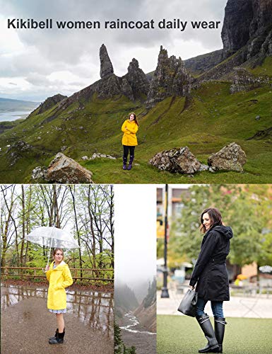 Kikibell Rain Jacket Women Striped Lined Hooded Lightweight Raincoat Outdoor Waterproof Windbreaker