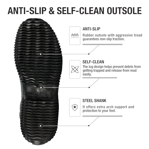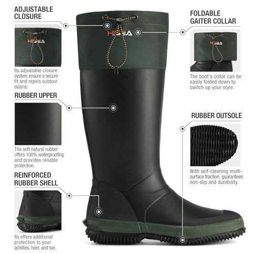 HISEA Classic Men’s Rainboot Neoprene Rubber Rain Boots for Men Waterproof with Adjustable Closure