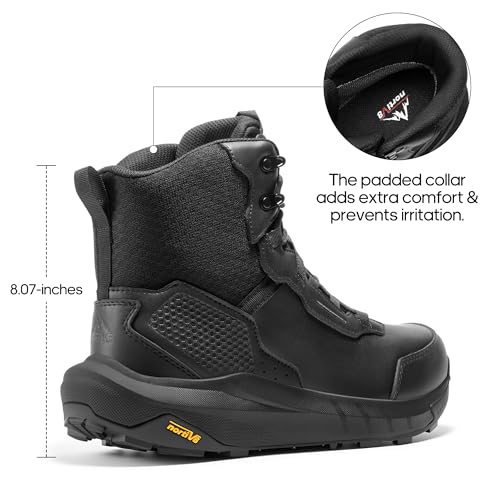 NORTIV 8 Men’s Waterproof Tactical Work Winter Boots Cushion Sole Lightweight Leather Non-Slip Combat Boots with Arch Support for Military Motorcycle Hiking HydroRange