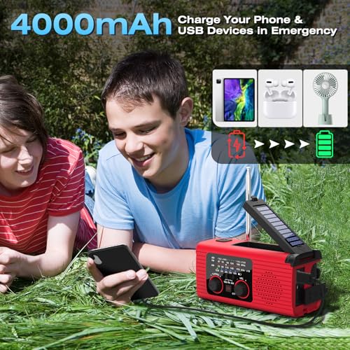 Emergency Weather Radio, 4000mAh NOAA Weather Alert Radio Solar Charging, Hand Crank & USB Charged, AM/FM with LED Flashlight, Reading Lamp, SOS Alarm, Headphone Jack for Outdoor Indoor