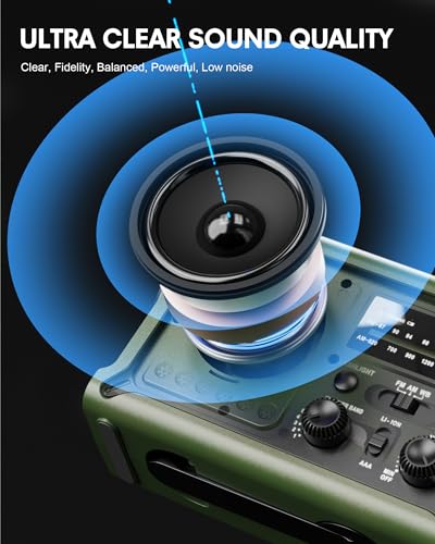 📻 【𝗘𝗻𝗵𝗮𝗻𝗰𝗲𝗱 𝗪𝗲𝗮𝘁𝗵𝗲𝗿 𝗥𝗲𝗰𝗲𝗽𝘁𝗶𝗼𝗻 + 𝗨𝗹𝘁𝗿𝗮 𝗖𝗹𝗲𝗮𝗿 𝗦𝗼𝘂𝗻𝗱 𝗤𝘂𝗮𝗹𝗶𝘁𝘆】Upgraded 𝗪𝗲𝗮𝘁𝗵𝗲𝗿 𝗥𝗮𝗱𝗶𝗼 has High-Sensitivity Receiver IC +Premium 57mm large speakers that captures distant stations with superior speed and clarity which make every sound clear, fidelity, balanced and powerful—ensures strongest reception of Weather stations at remote cabins/beaches/road trips/Basement Garage (40% stronger than standard radios)