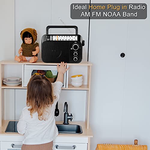 Retekess TR604W AM FM NOAA Radio, Portable Emergency Weather Radios with Best Reception, AC or D Battery Powered, with Clear Dial and Large Knob, Suit for Home (Black)