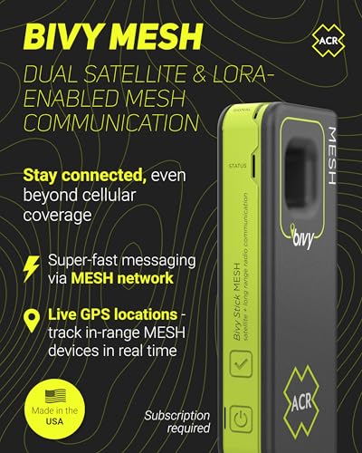 Be the first to review “ACR Bivy Stick MESH Satellite Communicator – Dual-Mode LoRa®-Enabled Mesh & Global Iridium Coverage, Two-Way SMS, GPS Tracker, Group Messaging, SOS Emergency with 24hr Reserve Battery – iOS/Android”