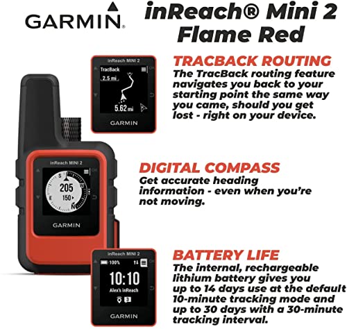 Wearable4U – Garmin inReach Mini 2 Lightweight and Compact Satellite Communicator, Hiking Handheld, Flame Red with 2 Pack Cases Black/Khaki Bundle
