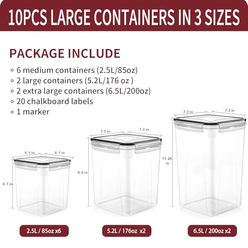 Just the Right Containers: The flour and sugar containers set included 2 pcs EXTRA LARGE size 6.5L/220oz, 2 pcs LARGE size 5.2L/176oz and 6 pcs MEDIUM size. Extra gift( White pen + 20 Pcs Blackboard labels), which is very suitable for storing daily food