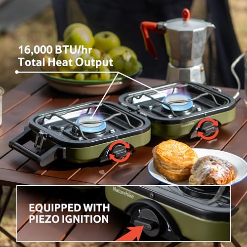 Naturehike 2 Burner Folding Camping Stove, Portable Propane Gas Stove with Carry Bag, 16000 BTU High-Performance Camp Stove with ETL Certification, Adjustable Burners & Piezo Ignition
