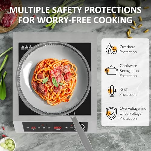Sunvivi 1800W Portable Induction Cooktop, Commercial-Grade Electric Countertop Burner with Timer, Induction Hot Plate with LED Screen, 10 Power(100W-1800W), 14 Temp Setting(140°F-536°F), Black