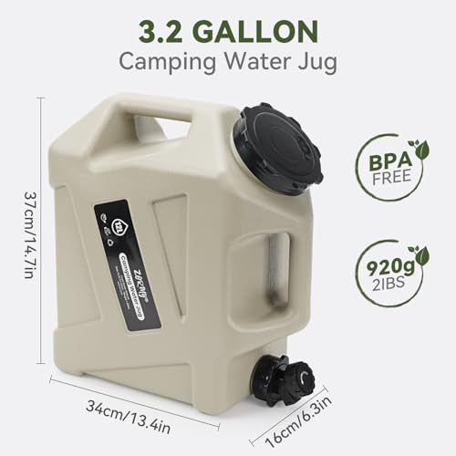 ZORMY 3.2 Gallon Camping Water Container with Spigot, Camping Water Jug, Portable Water Storage Container, BPA Free Large Emergency Water Storage for Camp, Vehicle, Car, Outdoor Hiking, Picnic