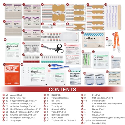 【Contents】Fully packed with 371 pcs premium emergency medical supplies – assorted bandages, gauzes, pads, burn gel packet, instant cold pack, tapes, gloves, etc. It meets international medical standards, suit for minor cuts, scrapes, sprains and burns.