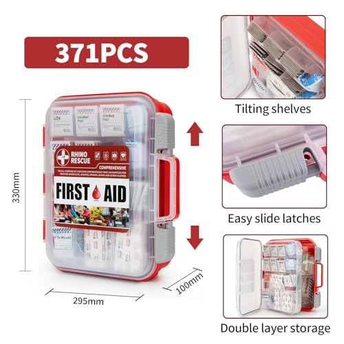 RHINO RESCUE 371 Pieces OSHA All-Purpose First Aid Kit, Home & Office Professional Medical Supplies, Ideal for Emergency, School, Business