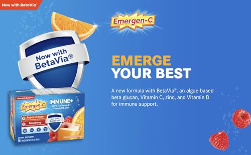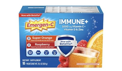 Emergen-C Immune+ 1000 mg Vitamin C + Vitamin D & Zinc, (Super Orange 60 Ct/Raspberry 30Ct) 90 Packets