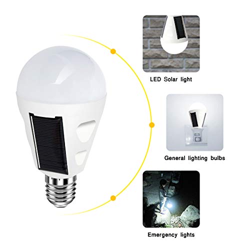 4 Pack LED Solar Emergency Light Bulbs for Home Power Failure, E26/E27 7W Rechargeable Battery Backup Bulb, Hurricane Supplies for Home, White Daylight 6000k Outdoor Hiking Camping Light