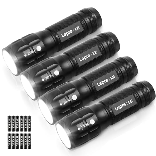 Lighting EVER LED Flashlights High Lumens, Small Flashlight, Waterproof, Adjustable Focus Flash Light for Outdoor, Emergency, Camping, AAA Batteries Included, 4 Pack