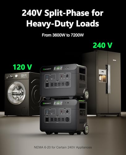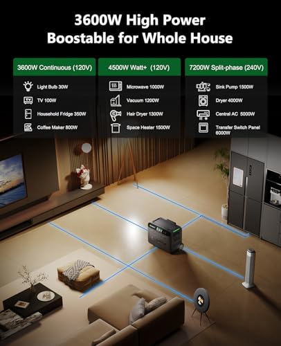 【Scalable for Whole-home】Expandable to a 240V battery system (2*HELIOS 3600 & 1*split-phase connector required) with up to 7200W/36kWh to meet the power needs of your entire home for 4-7 days and simultaneously energize your whole house by connecting to a transfer switch.