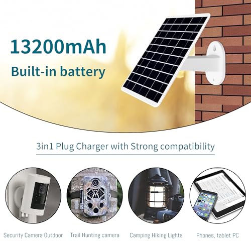 8W Solar Panel Built-in with SANYO 13200mAh Battery for Security Camera Outdoor, 3in1 Plug Charger Panel for Trail Hunting Camera, Support Emergency Power for Camping Hiking Lights, Phones, Tablet PC