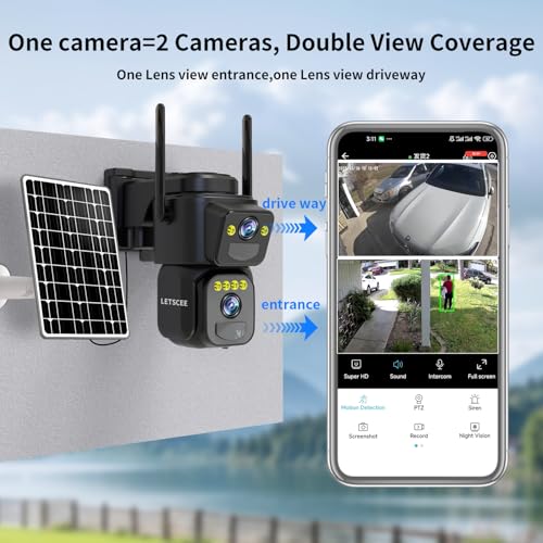 Dual Lens Security Cameras Wireless Outdoor,Solar Cameras for Home Security,Motion Detection,Night Vision,No Month Fee,IP65 Water Proof