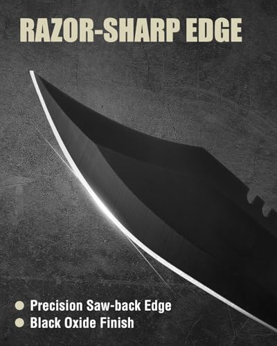 Razor Sharp Clip Point Blade: The survival Knife is made of stainless steel for excellent hardness, improved edge retention and rust resistance. Survival knife’s clip point blade features saw back, black anodize, ideal for camping expeditions, survival training or military combating