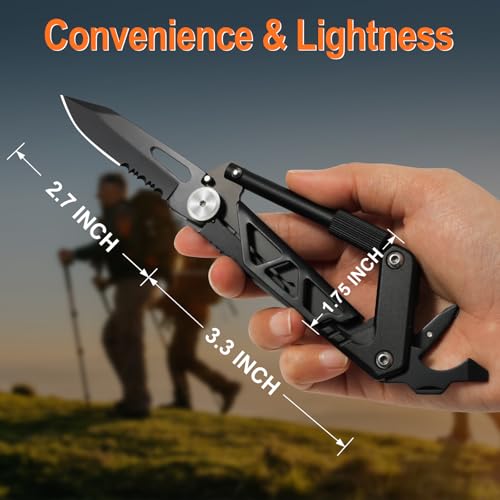 Multitool Carabiner with Pocket Knife, EDC Gear with Folding Knives, Bottle Opener, Window Breaker And Screwdriver, Fishing Gifts for Men Unique, Tactical Survival Gear for Camping And Hiking