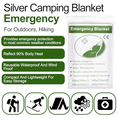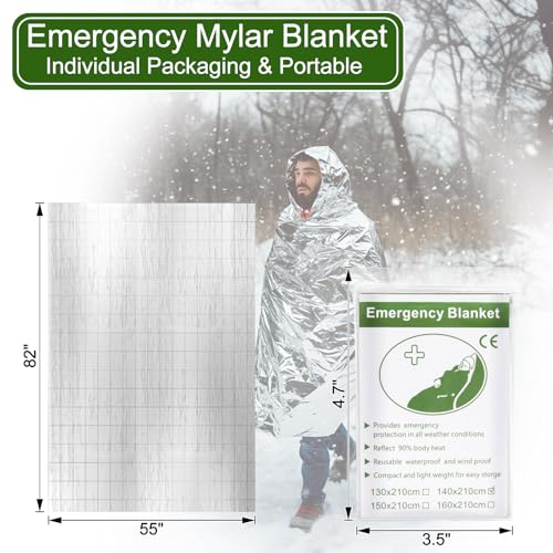 LIGHTWEIGHT PACKAGE: Each 55″ x 82″ silver emergency blankets comes in compact packaging designed for effortless storage in your survival kit, pocket, or bug out bag. These essential emergency blankets for survival provide reliable protection that’s ready when you need it most – perfect for emergency situations