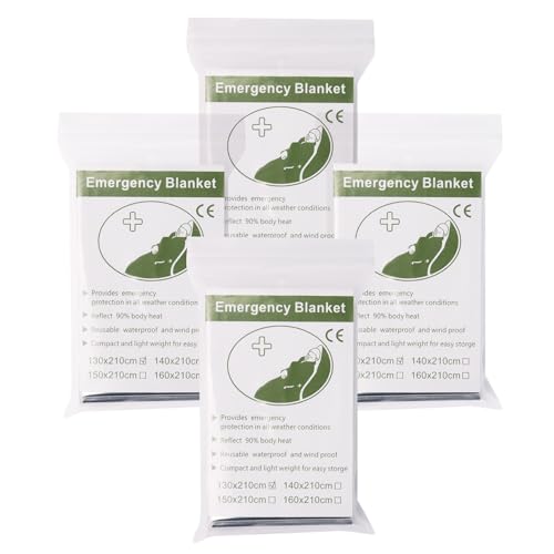 4 Pack Emergency Blanket, Premium Mylar Bankets, Thermal Blanket for Camping, Space Blankets Survival, Foil Blankets for Warmth, Heat Reflective Blanket for Outdoors, Hiking, Marathons, First Aid