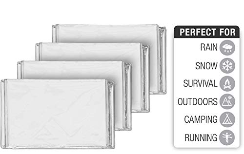 Swiss Safe 4 Pack Mylar Emergency Blankets for Survival – Compact & Insulated for Cold Weather – Designed for NASA, Outdoor, Running, Camping, Survival, First Aid Car Kit – Silver, 4 Pack