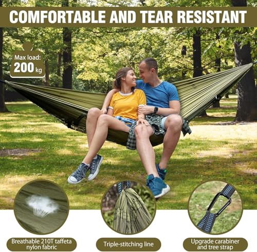 Camping Hammock with Mosquito Net, Lightweight Portable Double & Single Hammock Tent with 2 Tree Straps, Parachute Nylon Hammock for Outdoor Backpacking Beach Backyard Patio Hiking, Arm Green