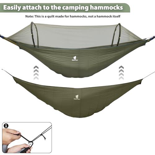 【Lightweight & Compact Size】Ultralight camping hammock under quilt weighs only about 1.87 lbs, come with a compression stuff sack into a small size for easy carrying and save space. It is perfect for camping, backpacking ,hunting, outdoor activities, mountaineering