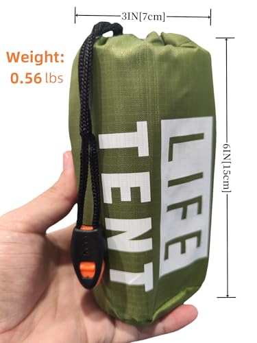 【Compact and Lightweight Design】:Ideal for backpackers and survivalists, the Survival Life Tent weighs only 8.7OZ. pounds and and folding into a compact 5.25”x 3.25” portable size. It easily fits into your emergency kit or backpack without adding significant weight or bulk. When space and weight matter most, this tent offers the perfect balance between portability and functionality.