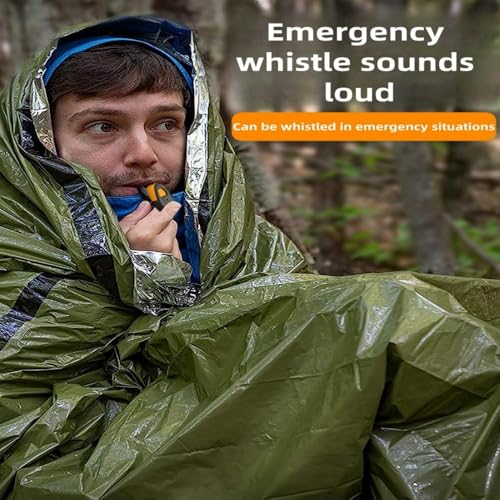 【Integrated Emergency Tools】: The Survival Life Tent includes a 120-decibel whistle, audible up to a mile away, and a 550lb Para-Synch drawstring, ideal for securing or repairing gear. This bivvy tent is a crucial part of your survival kit, ensuring you’re prepared for any situation