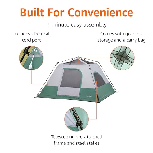 Amazon Basics Instant Camping Tent with Rainfly, Weather-Resistant, Quick Setup