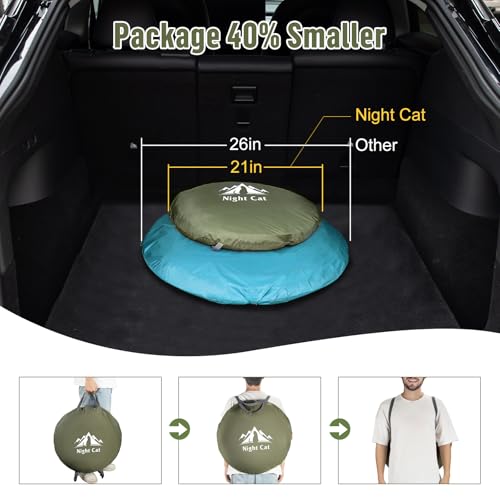 【Package 40% Smaller】Weight:1.5kg, Package size:21x21x2in. Tranditional pop tent fold in 3 circles while Night Cat Upgraded Pop up Tent fold in 4 circles narrowing the radius of circle to make it 40% Smaller in package. Hand strap and 2 back straps is convenient to carry the foldable tent