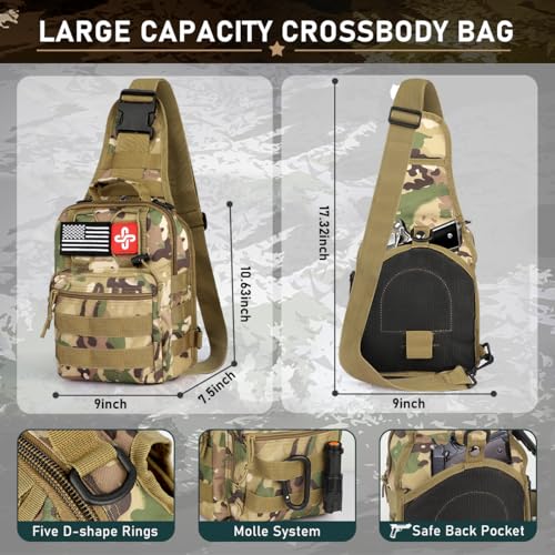 [Convenient Packaging]: The survival gear and supplies are packed in a crossbody bag, making it easy to carry and access in emergencies. The bag features multiple compartments and molle compatible straps and D-rings, allowing you to attach extra pouches or survival tools. The crossbody strap is also detachable, making it easy to connect to a tactical survival backpack using carabiners or the molle system