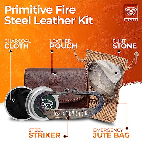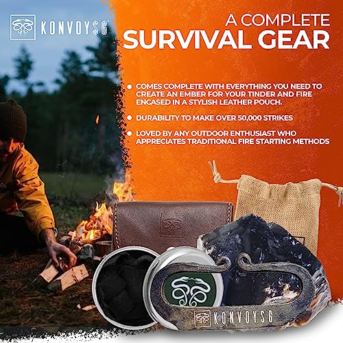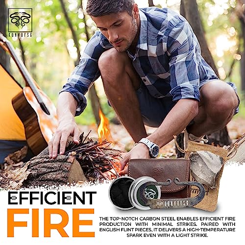 Flint & Steel Legacy: Ignite the wilderness with KonvoySG’s hand-forged carbon steel striker and English flint stone, mastering traditional firecraft like a pro.