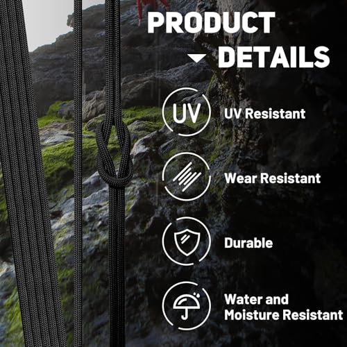 Multi-Purpose: It is adaptable to multiple scenarios, and can be used as tent fixing rope and hammock safety rope in the outdoor field, and can be used to hang heavy objects such as bicycles and kayaks in storage scenarios. At the same time, it is compatible with the needs of hand weaving and emergency bundling, realizing the expansion of the function of one rope for multiple uses