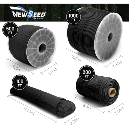 Paracord 550lb, Nylon Rope 1000FT, Tactical Parachute Cord, Type III Survival String with 7-Strand Core for Hiking, DIY, Camping, Black