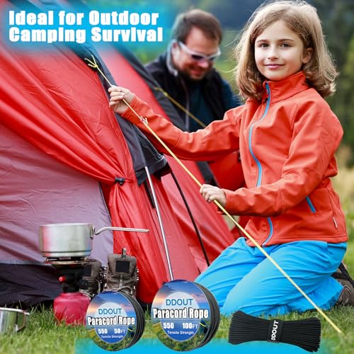 Compact and Easy Storage: DDOUT 50ft/100ft paracord rope comes neatly wound on a flat spool, keeping it organized and easy to carry—perfect for outdoor trips, toolboxes, go bags, or as a great gift for campers, hikers, and DIY enthusiasts.
